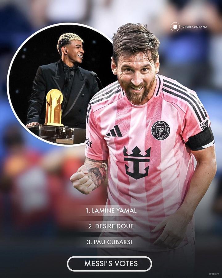 梅西2025科帕奖投票顺序:亚马尔、杜埃、库巴西